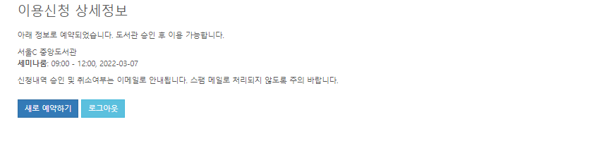 세미나룸 이용 전 시설 이용 승인 여부를 반드시 확인해주세요!