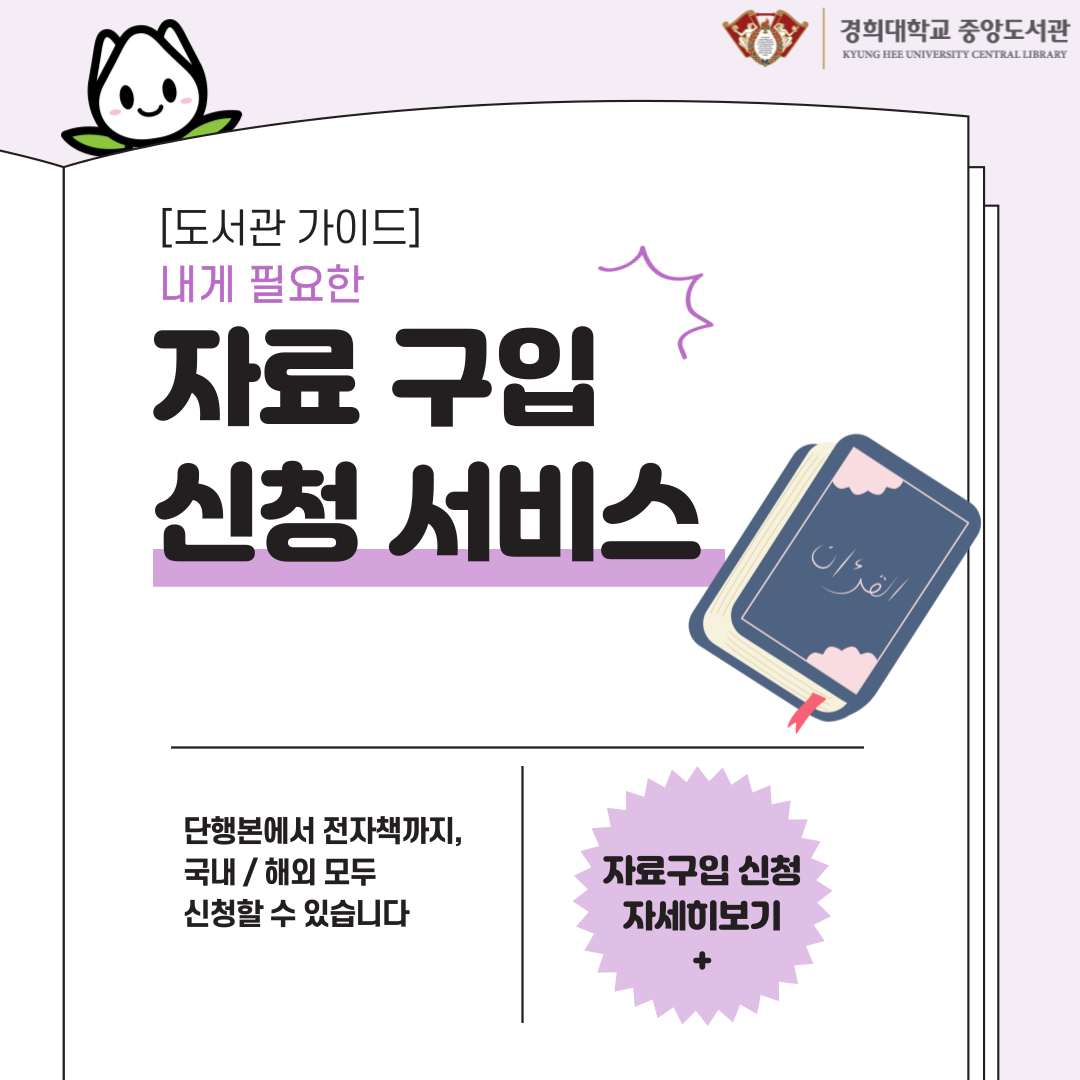지금까지 자료 구입 신청에 대해 알아보았습니다.