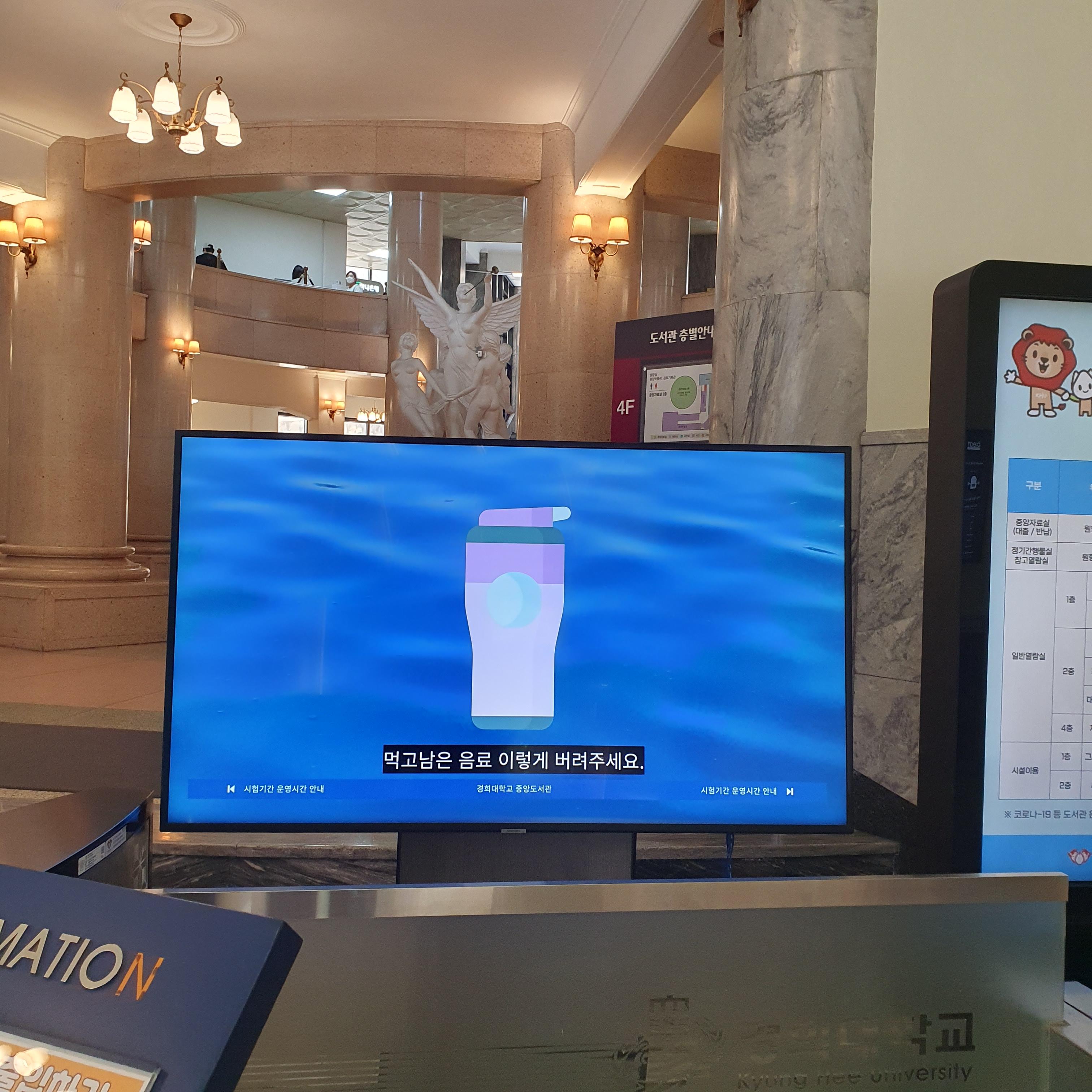 더불어 도서관에서도 로비에 도서관 에티켓 영상을 게시하고 있습니다.