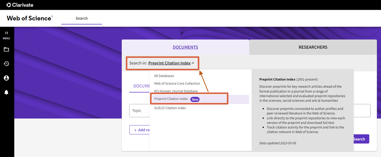 신규 전자자료 안내 : Web of Science - Preprint Citation Index도서관 가이드 2023. 9. 12. 10:23
