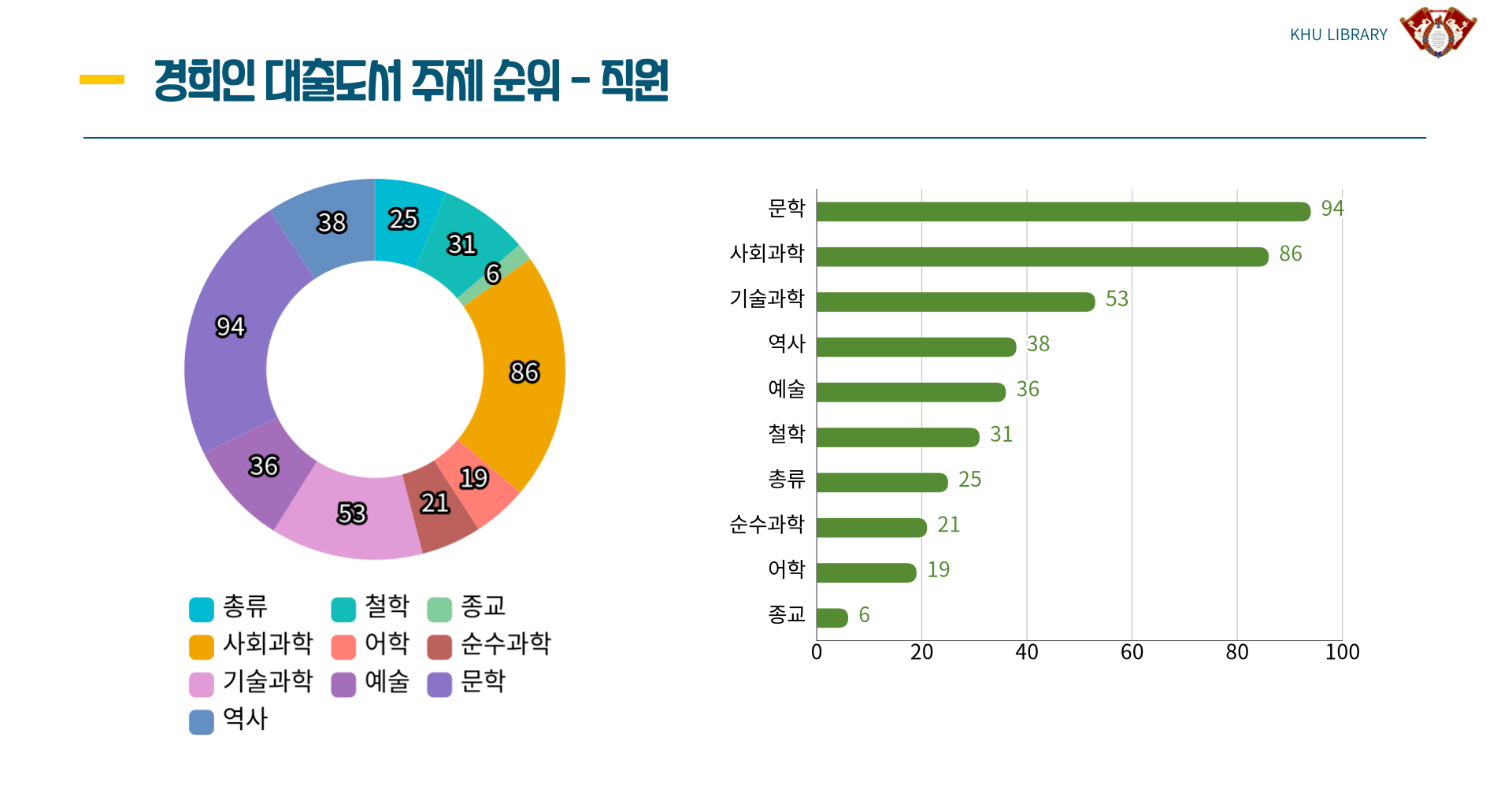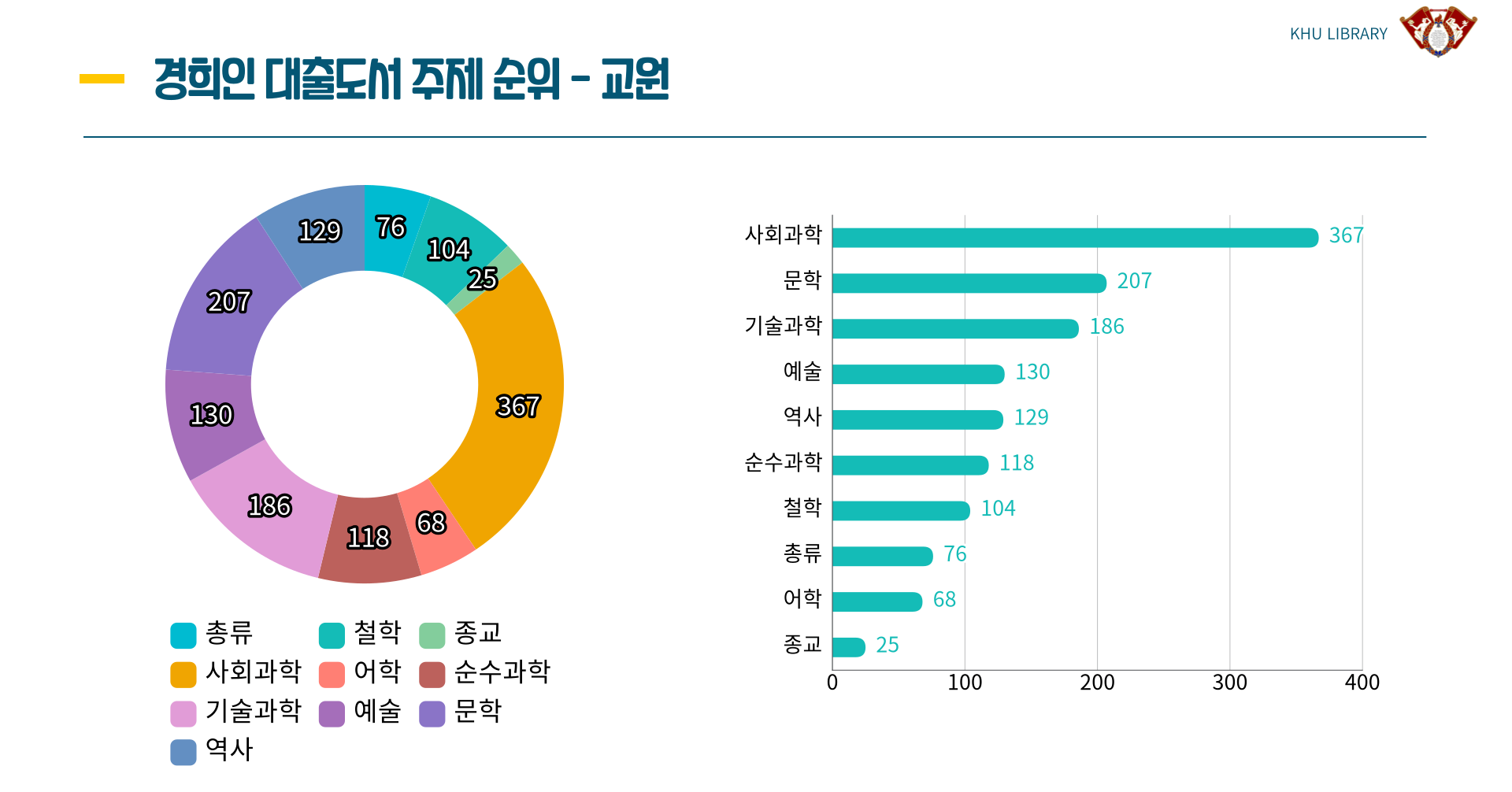그렇다면 다양한 경희인들의 신분에 따른 주제별 대출도서 순위는 어떻게 나왔을까요?