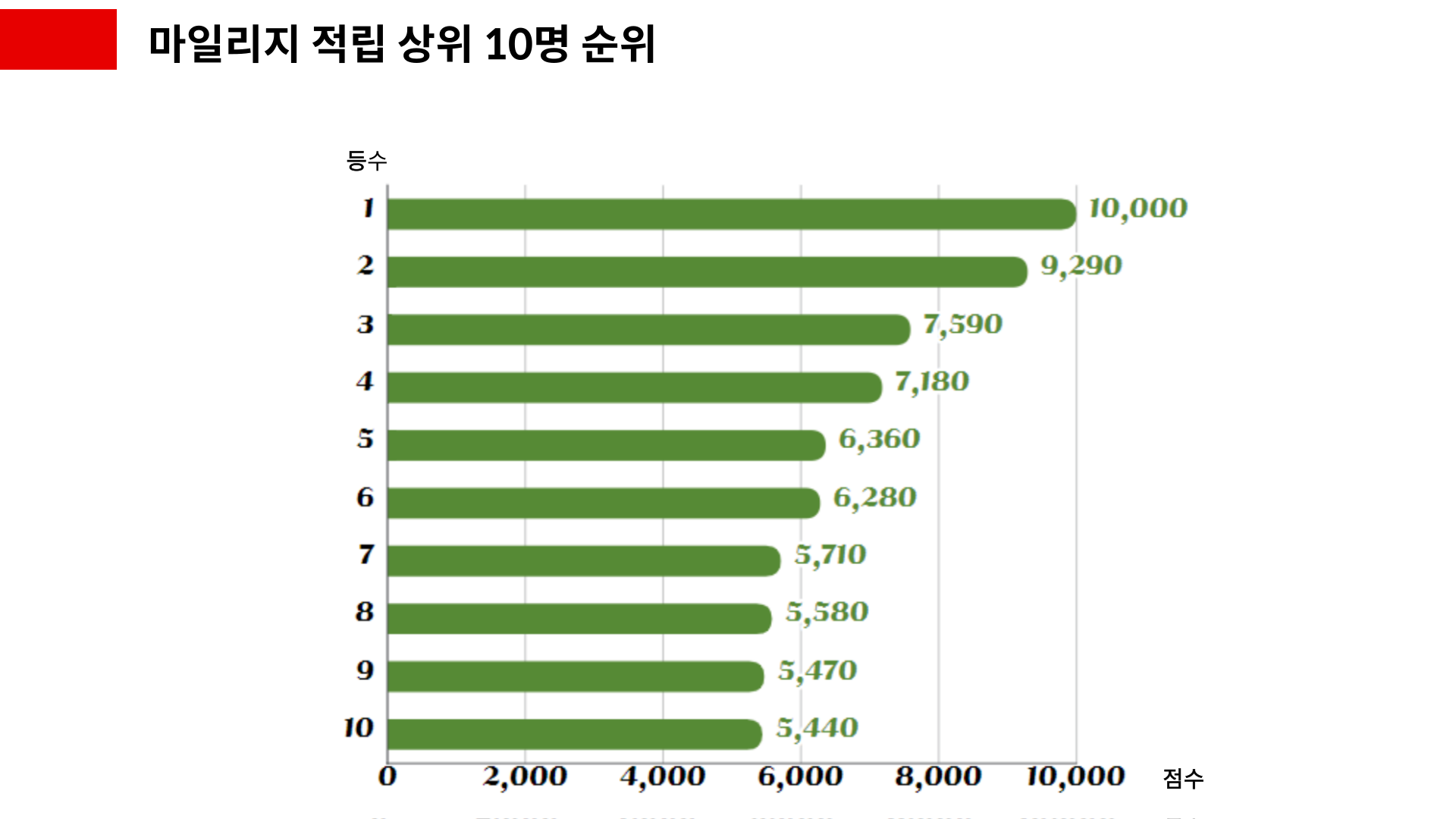 첫 번째는 마일리지 적립 상위 10명 순위입니다.