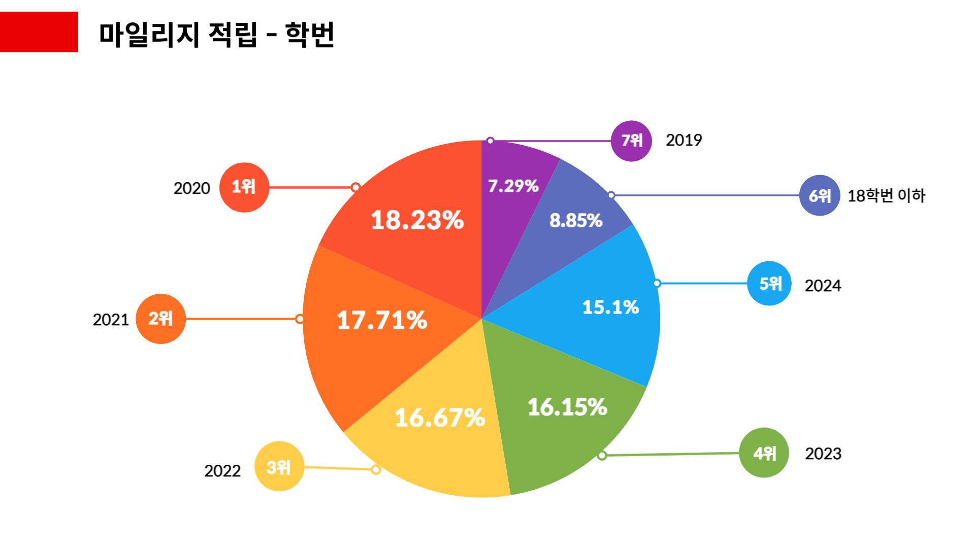 네 번째는 마일리지를 적립한 학번 비율입니다.