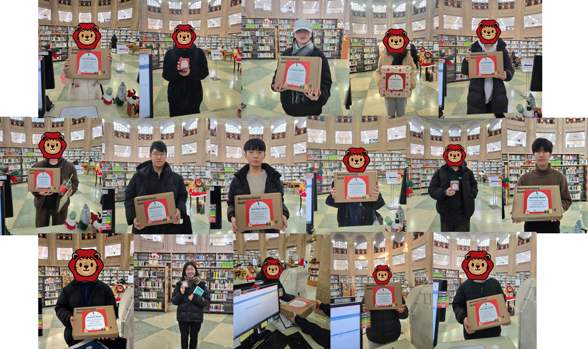 2024년 중앙도서관을 많이 이용한 학생들이 상품이 받은 것이기에,