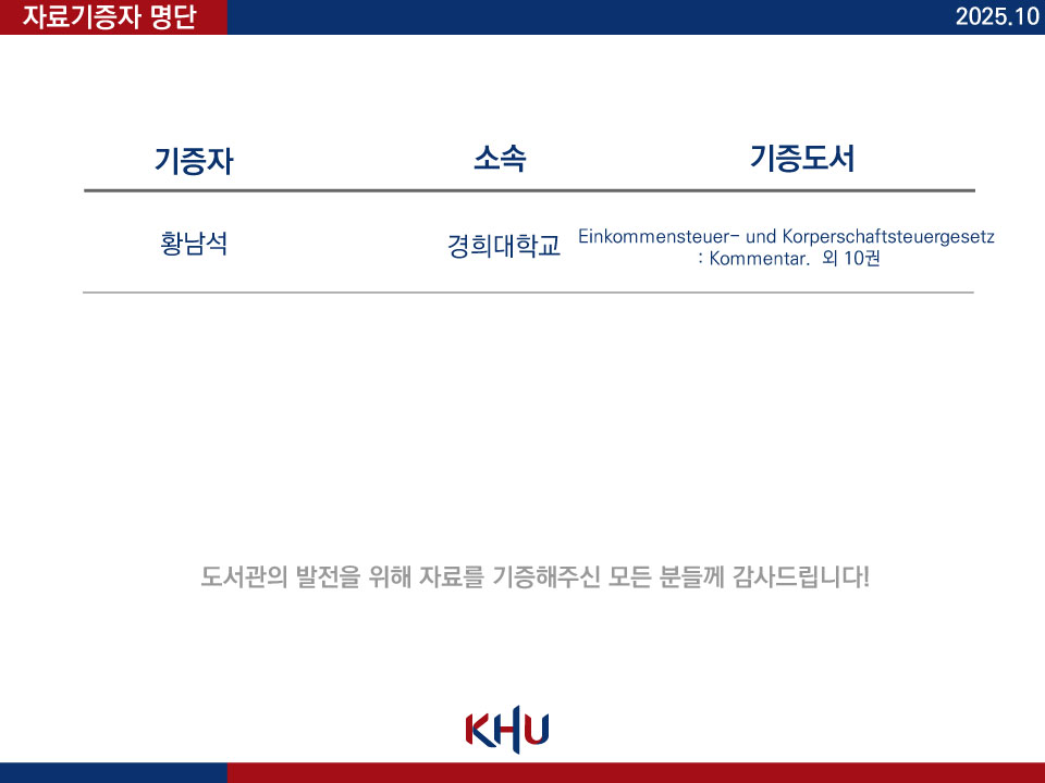 2025년 10월 자료를 기증해주신 분 명단입니다.
