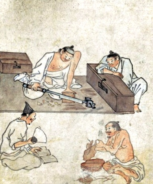 김홍도, 담배썰기, <단원풍속도첩> 국립중앙박물관. 그림의 배경은 조선시대 담뱃가게이다. 좌측 하단 책을 읽는 남성(전기수로 추정)이 부채를 부치며 이야기를 전달하고 있다. (*전기수(傳奇叟) : 조선후기 소설을 전문적으로 읽어 주던 낭독가) 1. 머리말: 글을 읽어주는 남자, 전기수의 귀환