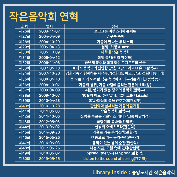 Library Inside : 중앙도서관 작은음악회경희인의 서재/Library Inside 2019. 4. 29. 10:03