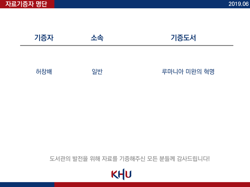 2019년 6월 도서관 자료기증자 명단도서관 소식 2019. 7. 1. 15:52