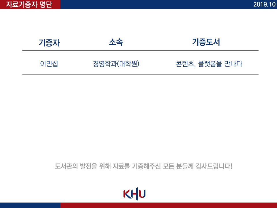 2019년 10월 도서관 자료기증자 명단도서관 소식 2019. 11. 1. 16:05