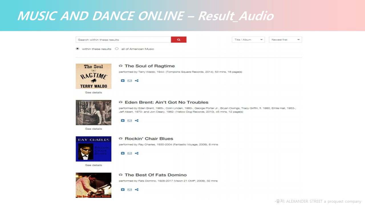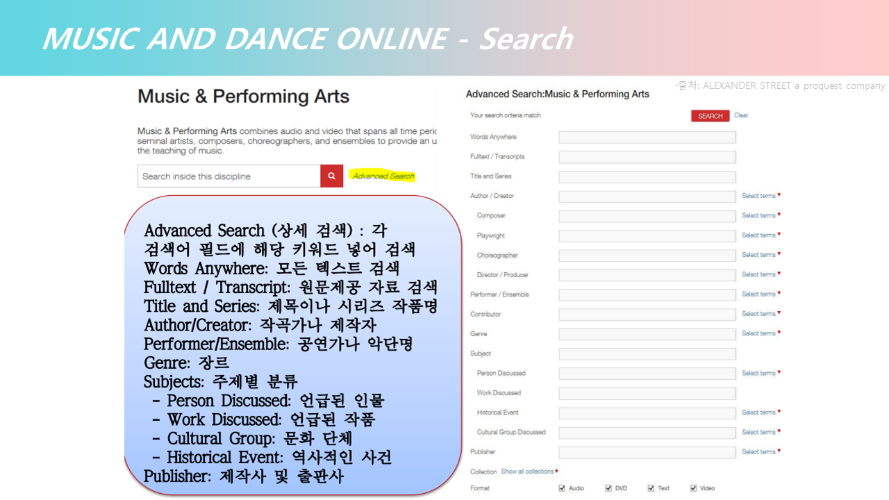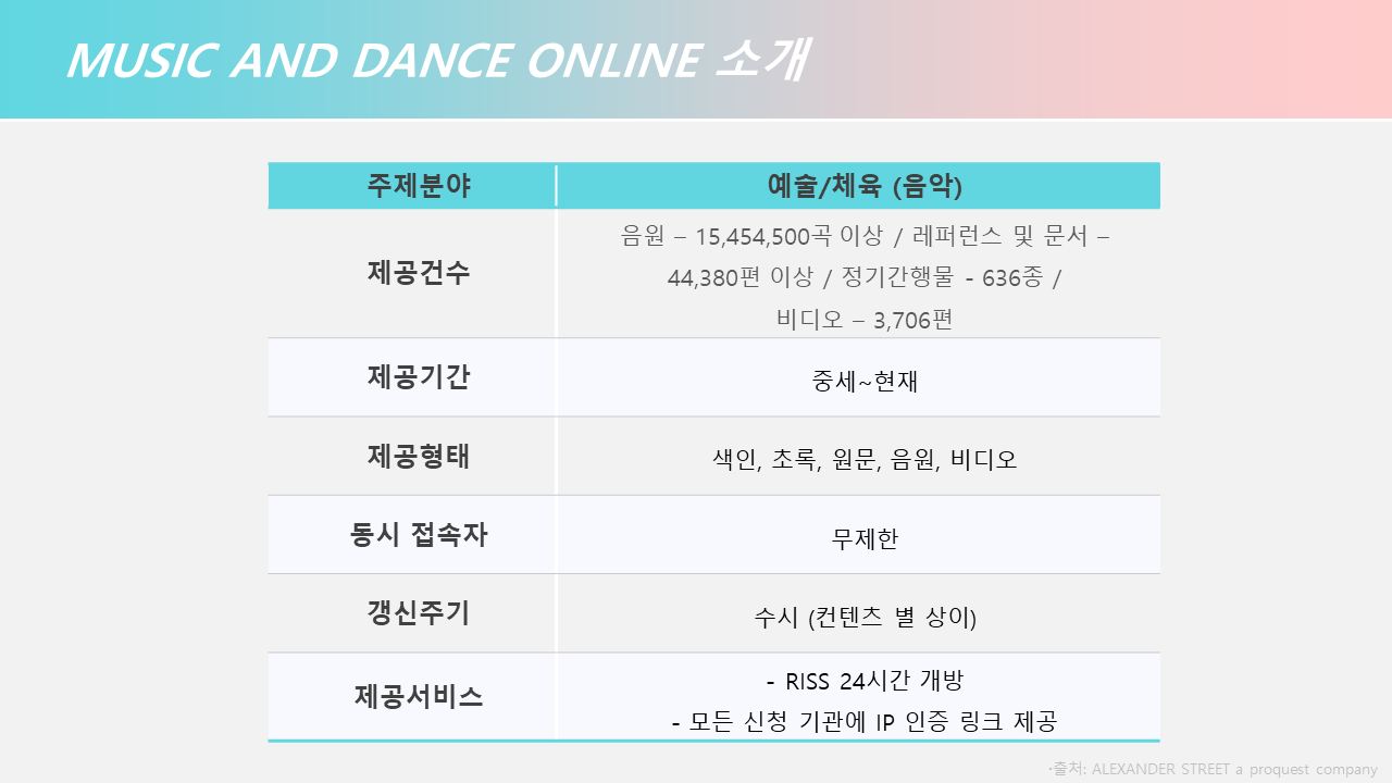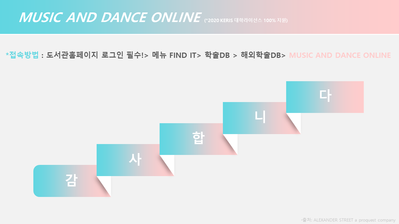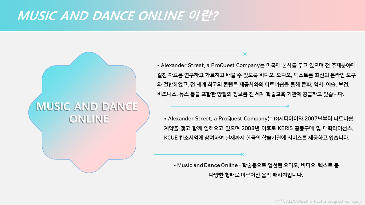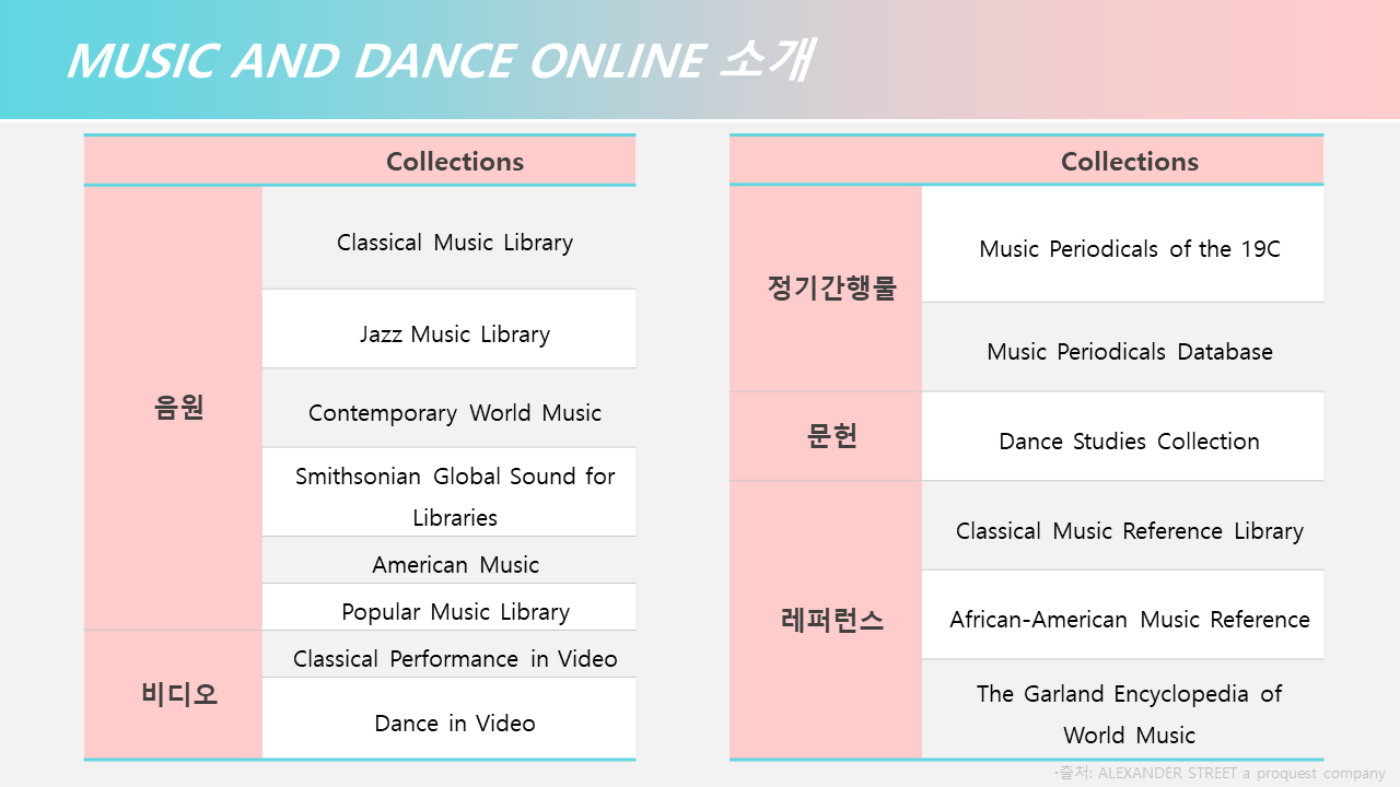 2020 신규구독DB 활용법 - Music and Dance Online도서관 가이드 2020. 2. 12. 09:45