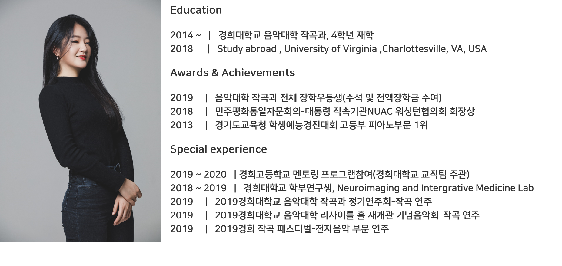 작곡을 맡아주신 분은 바로 바로 경희대 음악대학 작곡과 김지윤 학생입니다!