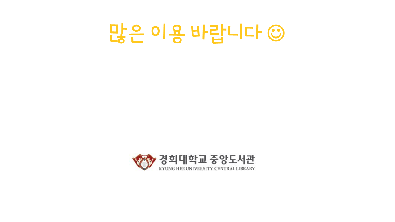 2020년 4월 도서관 자료기증자 명단 (0) 2020.04.24 2020년 3월 도서관 자료기증자 명단 (0) 2020.03.19 학업과 연구에 유용한 온라인 자료 안내 (0) 2020.03.12 2019 중앙도서관 설문조사 결과 (0) 2020.02.25 「새로운 도서관 종료음악♪」작곡가 김지윤 학생 인터뷰 (1) 2020.02.24