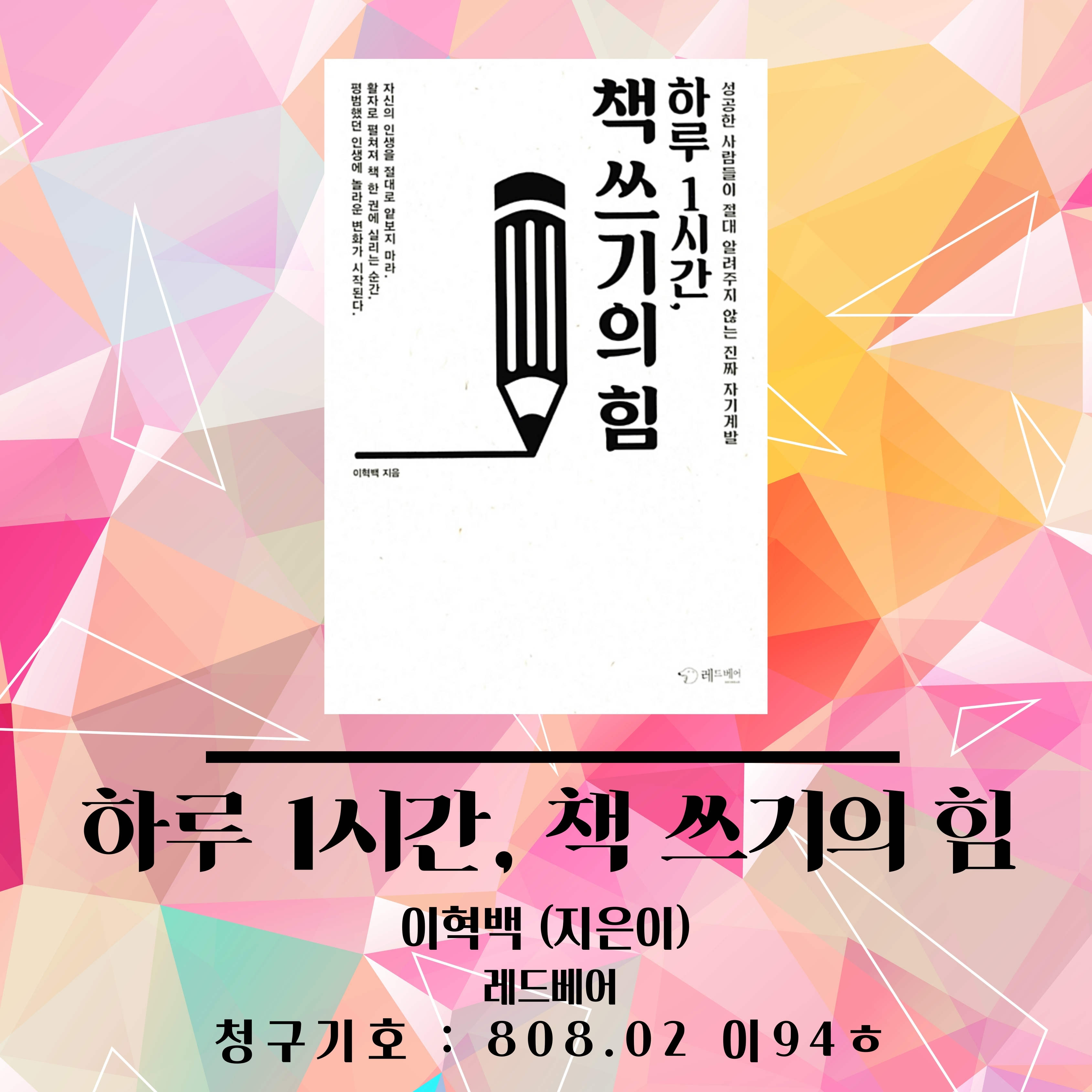 사람은 누구나 보석처럼 빛나는 인생 스토리를 지니고 있다. 누구도 넘볼 수 없는 차별화된 독특한 콘셉트로 그 소중한 이야기를 책 한 권에 담아보는 것은 어떨까? 펜의 힘은 총이나 칼보다 강하다고 한다. 책 한 권에 잘 정리된 이야기는 엄청난 힘이 있다. 그 힘은 다른 사람의 인생을 바꿀 뿐만 아니라 내 인생도 송두리째 바꾼다. 많은 사람이 더 나은 삶을 위해 자기계발에 매진하는 시대인데, 이제 주목해야 할 새로운 차원의 길이 있다. 책 쓰기야말로 진정한 자기계발의 지름길이다. · 참고자료