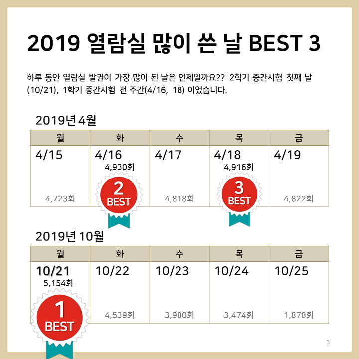 [차트톡] 2019 중앙도서관 열람실 BEST 3도서관 차트톡 2020. 11. 3. 13:30