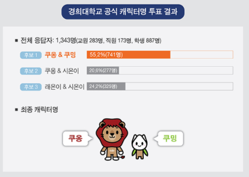 쿠옹이는 쿠(KHU)와 스페인어로 사자를 뜻하는 레온(Leon)의 온이 합쳐져 만들어졌다고 하는데요,