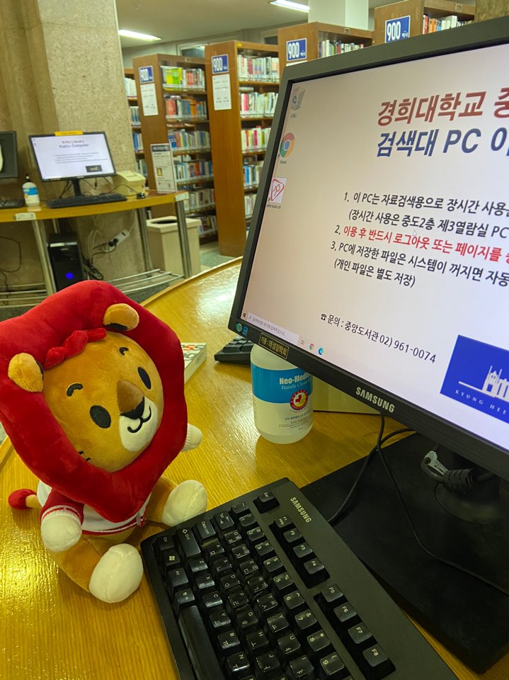 중앙도서관에 경희대학교 마스코트 “쿠옹”🦁이가 출몰했어요!