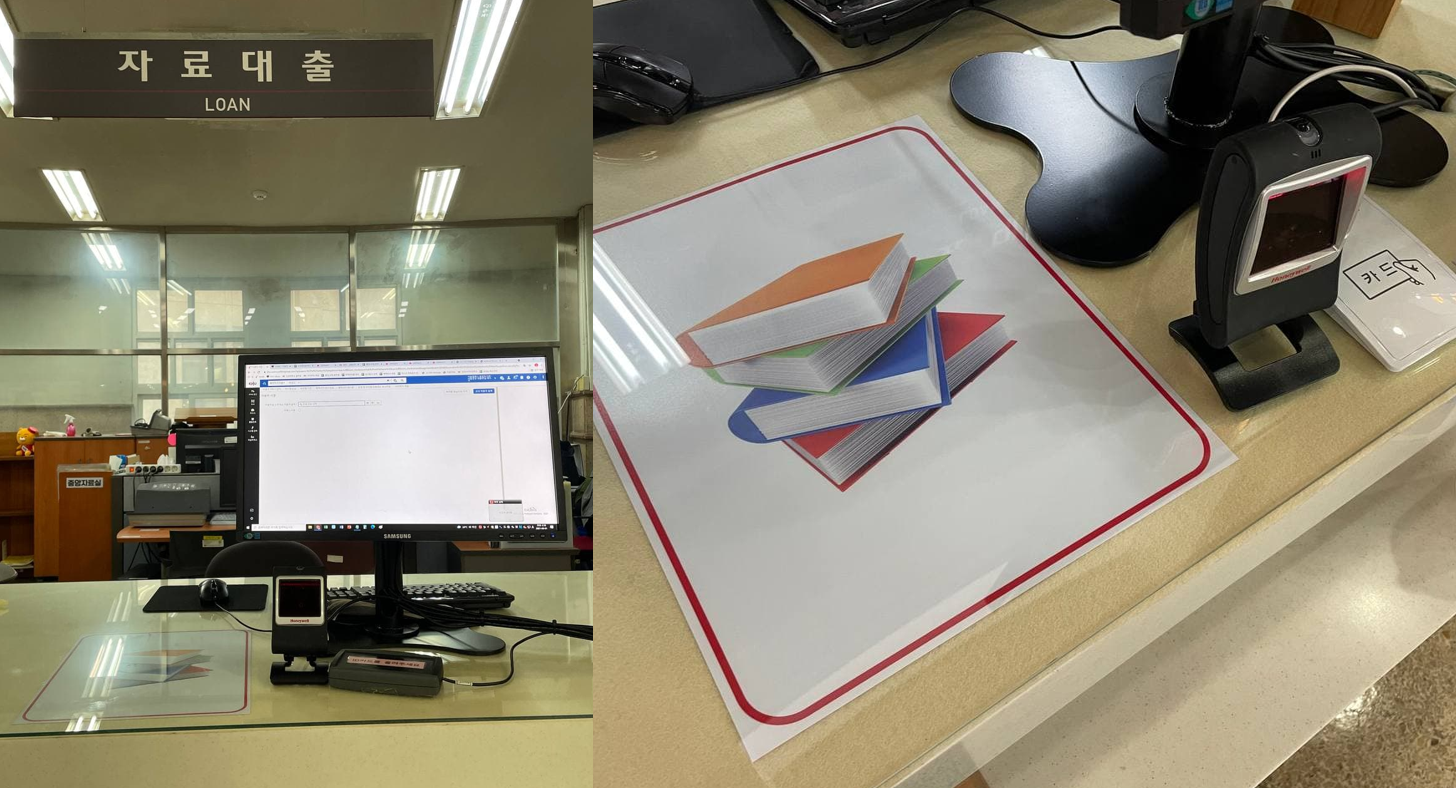 이제 기존 한 권씩 바코드로 대출처리 하던 방식이 아닌, 주파수 기반의 RFID 시스템을 통해 여러 권의 책을 빠르게 처리할 수 있게 되었습니다.