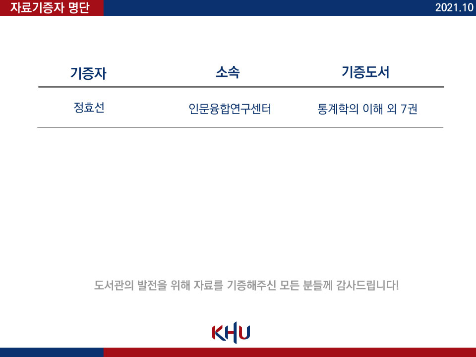 2021년 10월 도서관 자료기증자 명단도서관 소식 2021. 10. 20. 17:21