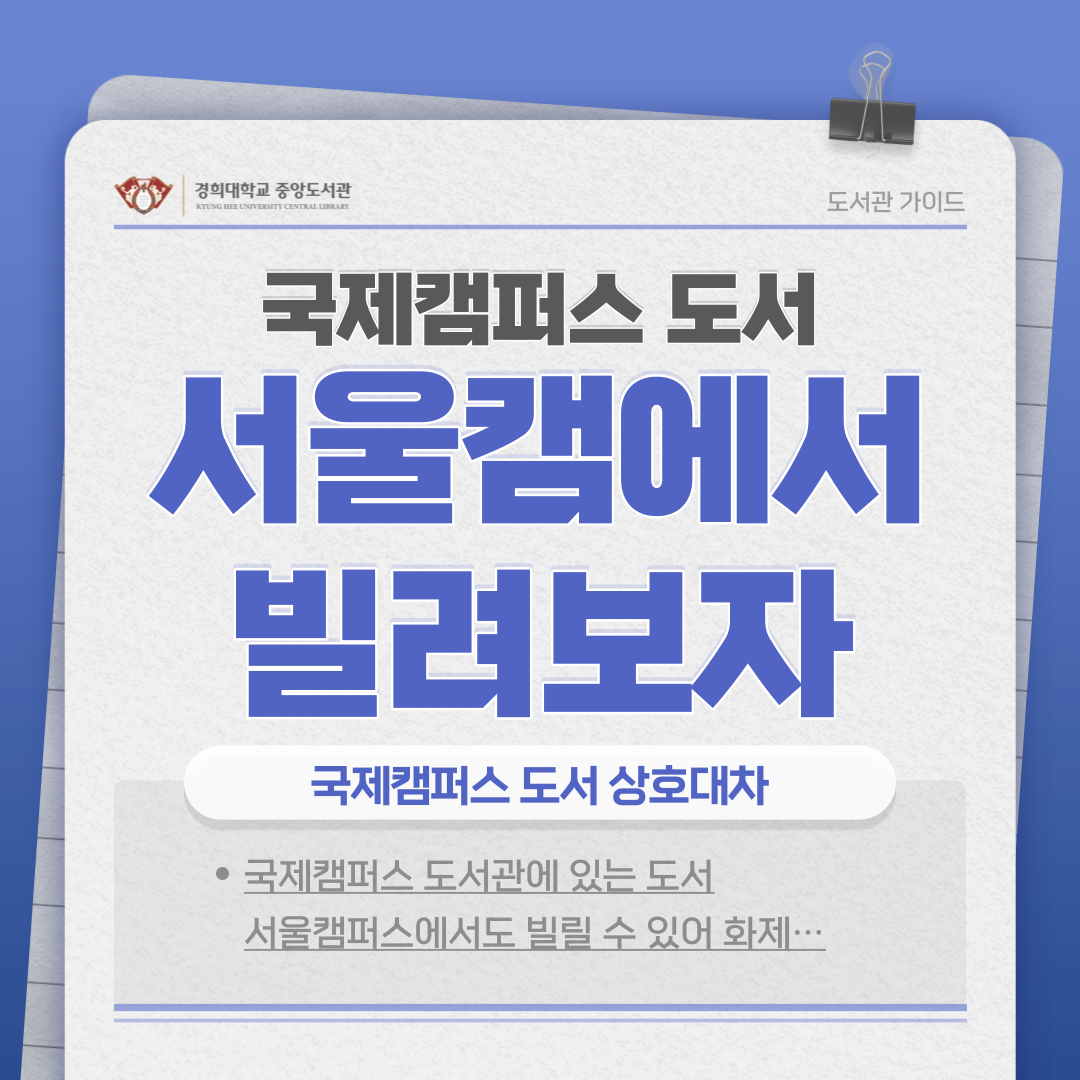 이제 서울캠퍼스에 없다고 당황하지 마시고 신청해서 스마트하게 도서관을 이용해보세요!
