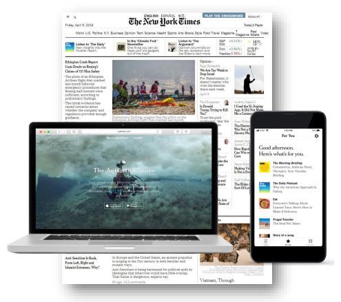 □ 뉴욕타임스 신문의 디지털 버전으로 뉴스 기사, 인터렉티브 동영상, 리뷰 및 오피니언, 사설, 광고, 블로그, 사진, 비디오 등을 제공하는 멀티 플랫폼 뉴스 서비스. 영어판, 국제판, 캐나다판, 스페인어판, 중국어판 등을 제공